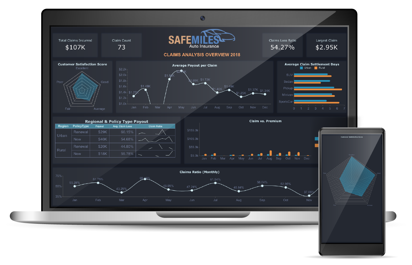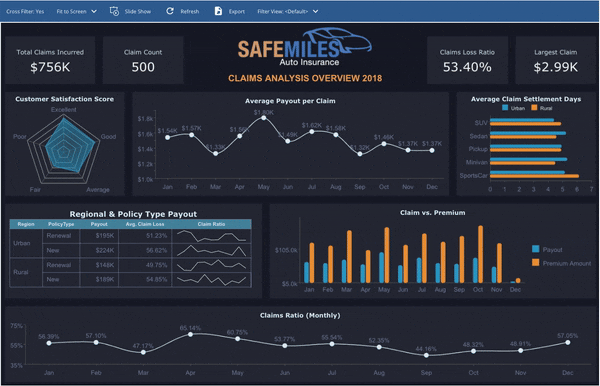 Empower insurance agents to make better, data driven decisions. With a claims analysis dashboard, you can: