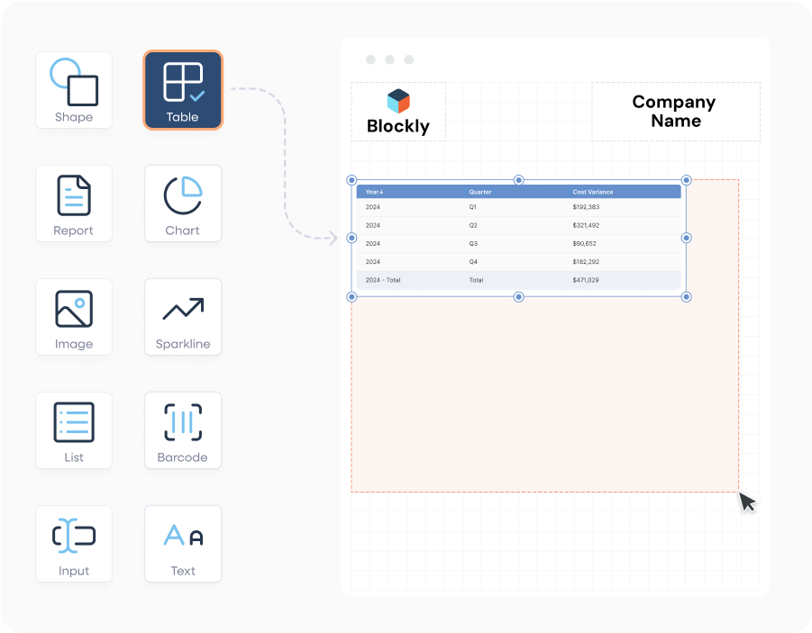 A modern and user-friendly designer interface to help a non-technical user easily prepare reports.
