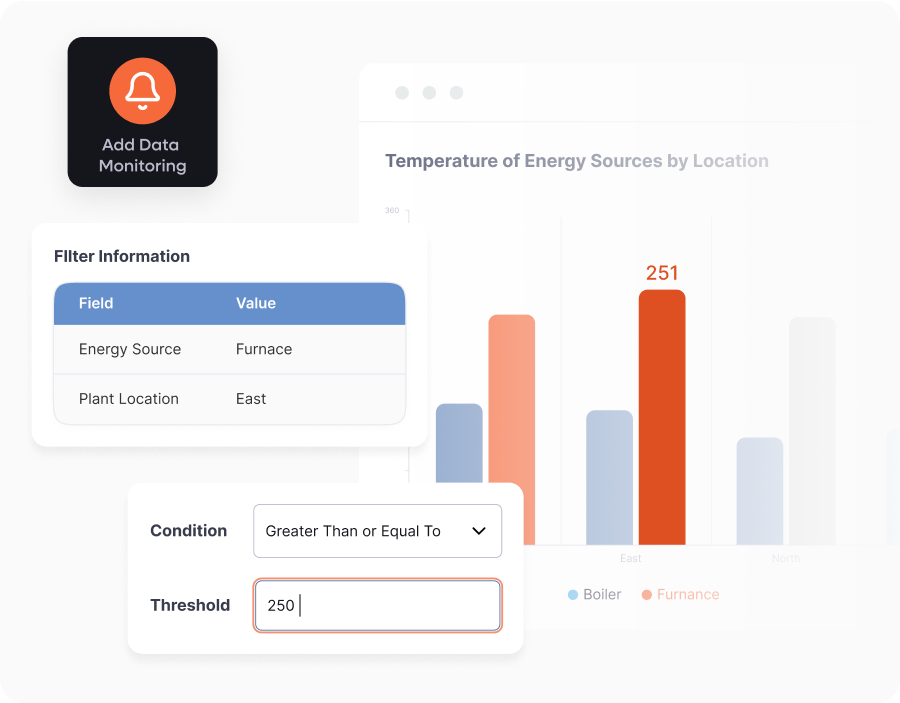 Create custom data monitoring rules and get notified instantly when values cross defined thresholds.