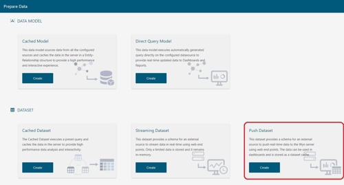 Before we dive into the APIs, let’s look at how we create a Push Dataset in Wyn Enterprise.