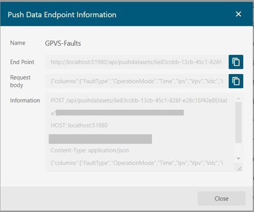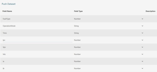 Once we have the Push Dataset set up on the Wyn server, we can push data to it using the Push Data API (Endpoint copied in Step 6 earlier). The GPVS-Faults data contains the following columns: