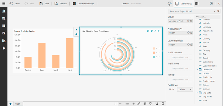 Note that the values are automatically aggregated. You can use this graph to compare the profitability of several regions and determine which ones are most profitable for your company. This graph allows you to quickly see trends and patterns in your data and make business decisions.