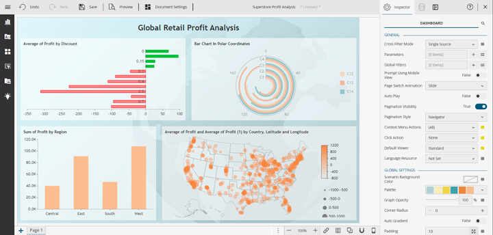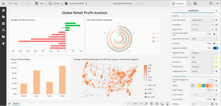 This tutorial shows you how to create customized visualizations for a hypothetical global retail chain. You’ll see how easy it is to create visual dashboards with Wyn Enterprise and how these dashboards help you gain insights into your data.