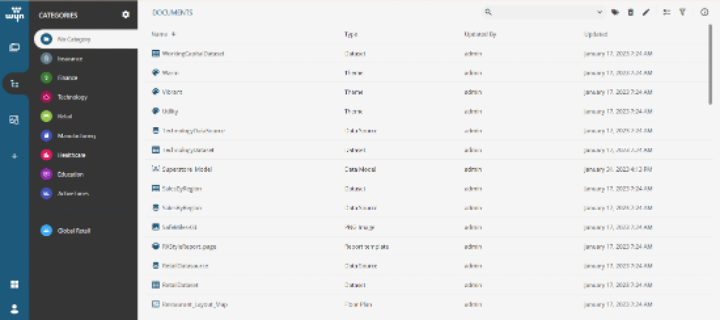 Wyn’s interface comprises of three portals: Document, Resource, and Admin. Because you downloaded the software as an administrator, you have access to all three. Before creating visualizations, it’s essential to understand each portal and the features available.