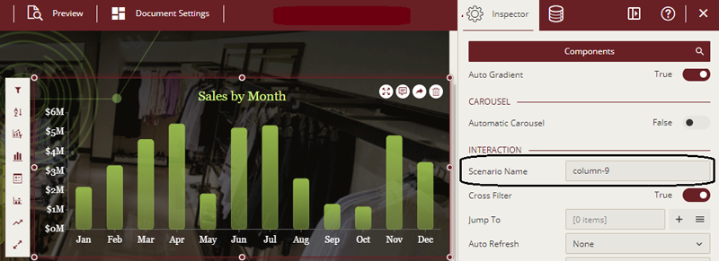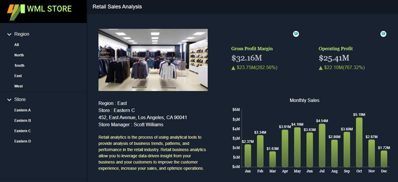 In this article, we’ll explore the ability to integrate a single scenario. Here’s a glimpse of what we can achieve by embedding individual scenarios from the complete dashboard. The ‘Gross Profit Margin,’ ‘Operating Profit,’ and ‘Monthly Sales’ are all individual scenarios from an existing dashboard.