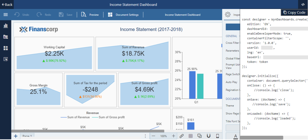 In this article, we’ll develop a simple web application and embed the Viewer and Designer components using div and the Wyn Dashboards API. We’ll achieve something like the below once we implement these APIs.