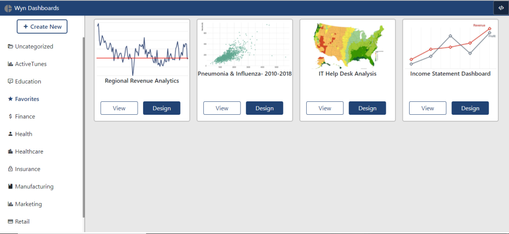 Now that we have the list of categories and dashboards, we can show them in our application as a list and a grid of cards. You may choose to display them as required in your application.