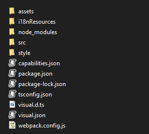 visual.d.ts, ts.config, node_modules, webpack.config.js: