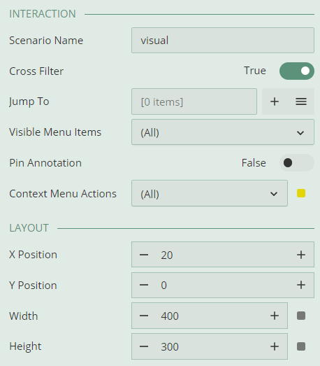 Then the Layout will determine the bounds and location of the visual, and can be edited with the mouse on the canvas or with the settings found here.