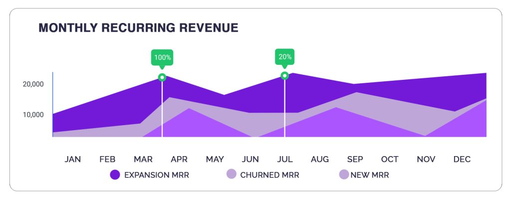 Monthly recurring revenue shows you how much money is coming in each month. It’s particularly useful for businesses that have subscriptions, service plans, or other ways that provide a steady income base as long as customers stick with you.