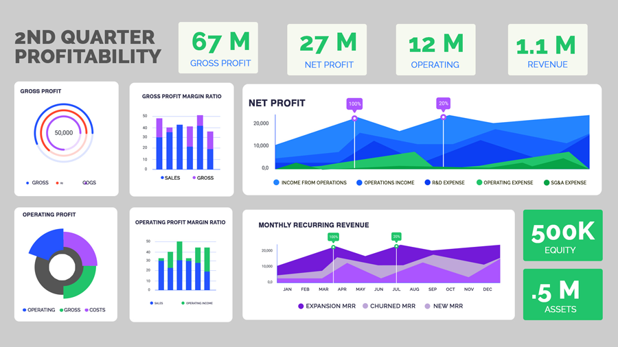 This is another place where business intelligence dashboards (by visualizing these comparisons) can give you a better way to look at the information. Comparing your performance with your industry or other investment opportunities can show, at a glance, whether you’re performing well or trailing where you should be.