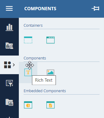 You can find the Rich Text component in Wyn Dashboard within the Components panel as shown below: