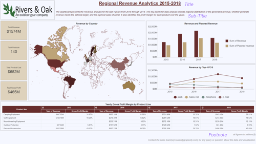 Using a title in a Dashboard grabs the attention of the audience (or dashboard consumers) by providing a high-level context for the data that is contained within the dashboard. The sub-title can be used to give more detail about the dashboard or a particular visualization explaining what it is about.