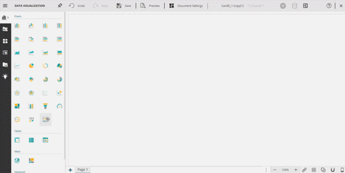 You can find the Card Chart in the Data Visualization’s Charts section. When you drop the card chart on the design page, you see the button to edit (or design) the card template on the Card scenario, as shown below: