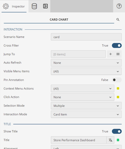 The Card Charts offers two modes to apply interactivity to a card item: