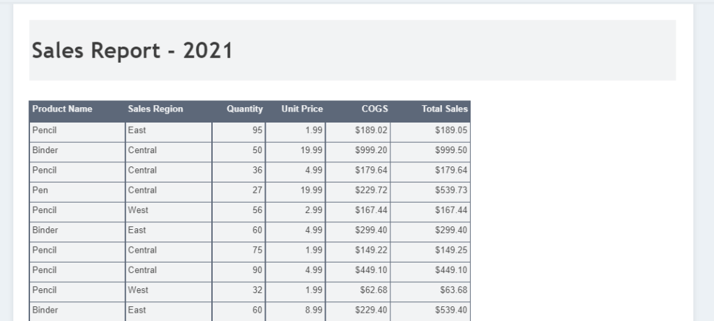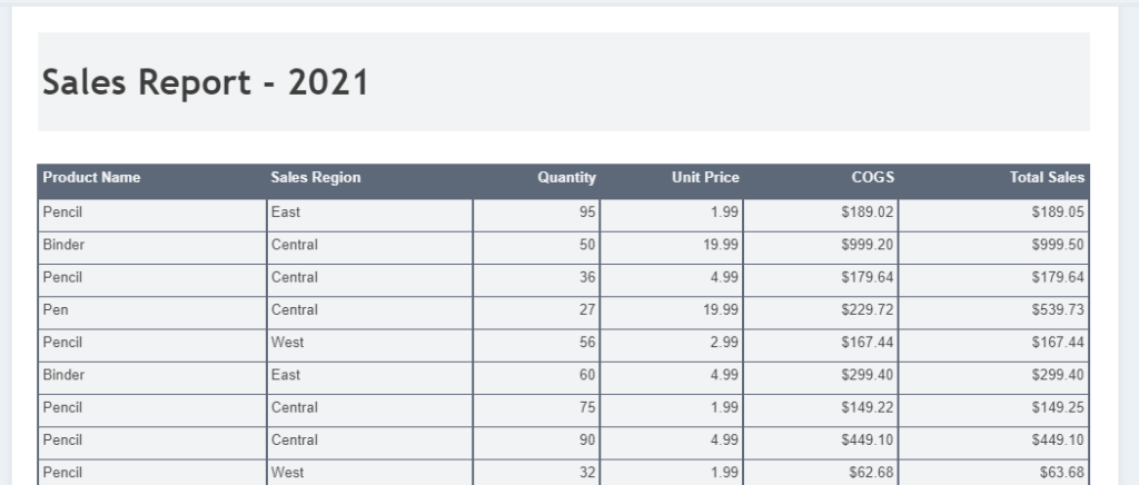 Here, we’ll see how the property can be used for a simple sales report.