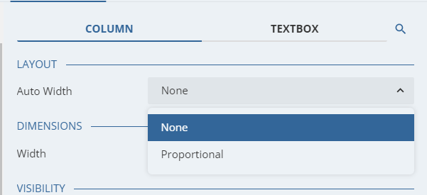When you select the column, you will find the new “Auto Width” property under the Layout section as shown below: