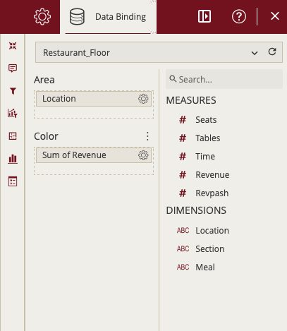 Once the floor plan is on the dashboard design surface, and the custom floor plan has been bound to it, we need to bind data to the floor plan. There are two data buckets with the floor plan control: