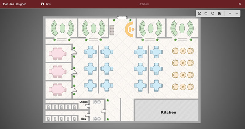 In this sample, we have marked our tables with Ellipses, and the Kitchen with a Rectangle.