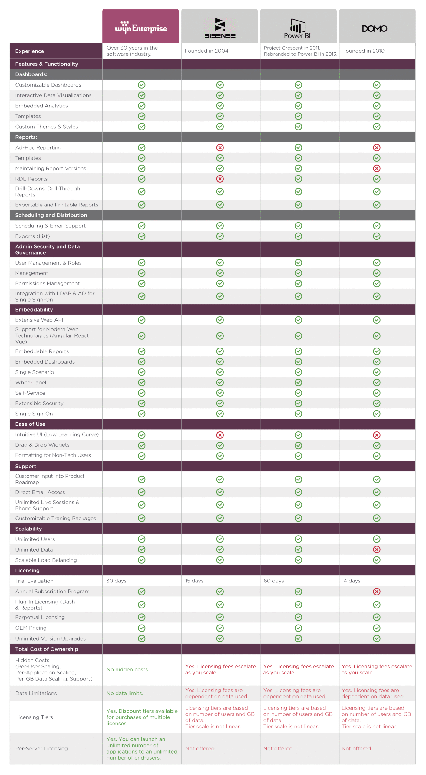 There are many embeddable BI tools available, but they are not all the same. Take a look as we compare Wyn Enterprise with other BI and analytics platforms.