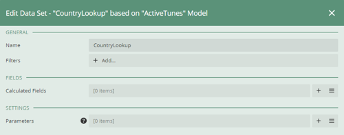 - Add a new data model based on Model Entity, and select the same Entity that the data model you selected in step 1 uses. Name it so you know it is the top level parameter that will be working here. I named mine “CountryLookup”.