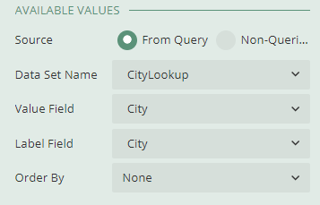 - And the City parameter will have the following available values:
