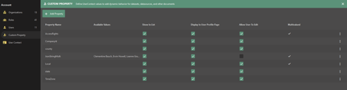 Navigate to the Custom Property section of the accounts area of the admin portal.