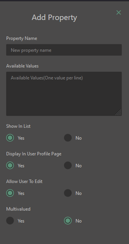 In this you will be able to give the property a Name, along with other permissions and value controls.