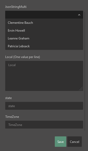 First option in picture is an item with available values and the second has multiple values enabled. The last 2 are the standard single string that can be entered in manually.